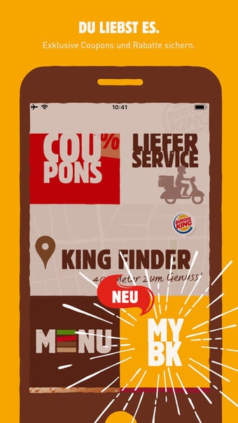 BURGER KING is beschikbaar voor iOS 12.1.2 of hoger. De huidige versie van de software is 6.25.3 en u kunt deze alleen in het Duits krijgen.